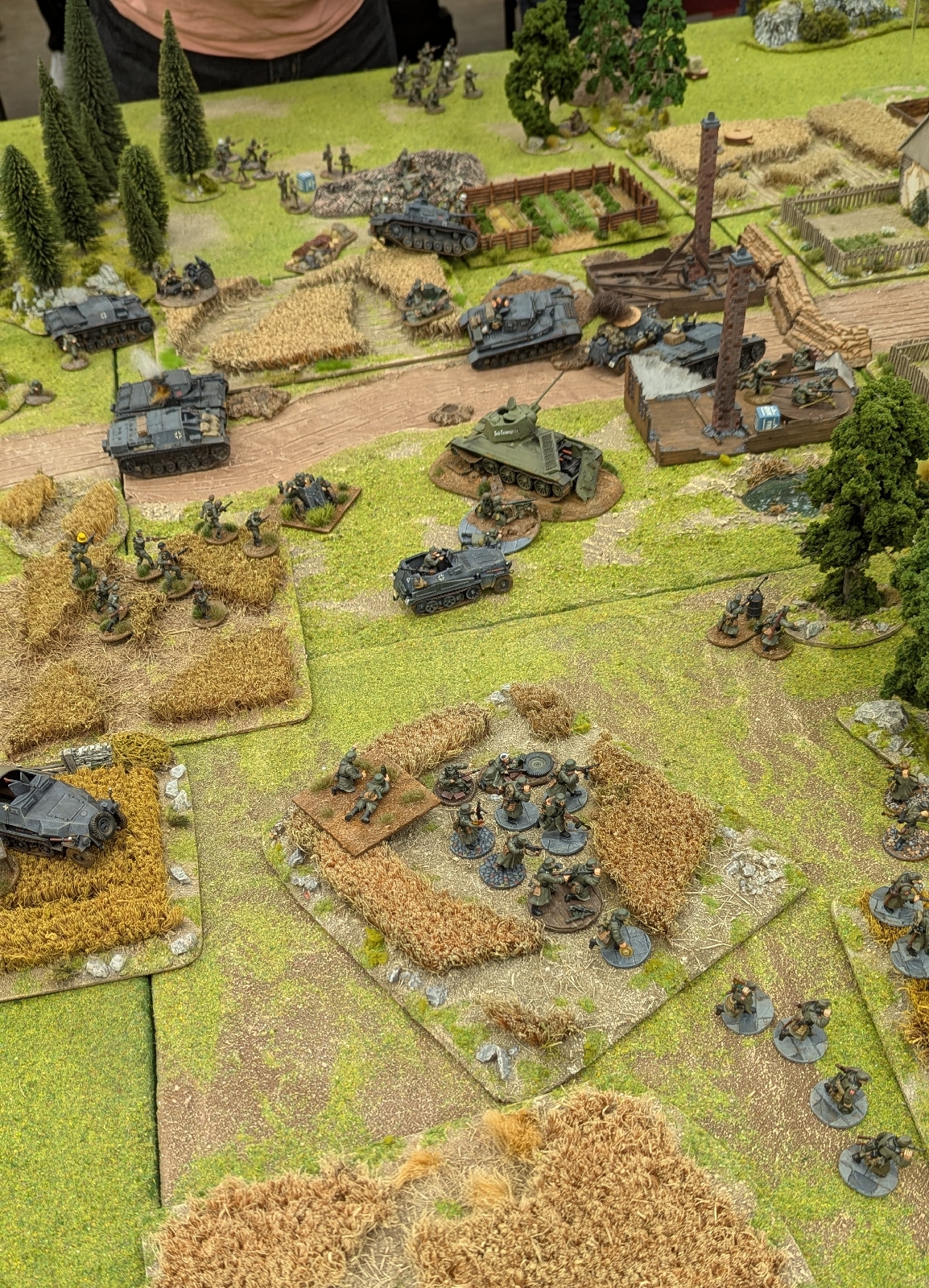 The British expecting German armour bring a 6pdr anti-tank up as support, with no German armour present they also lend support to fire on the beleaguered Germans at the hedge.